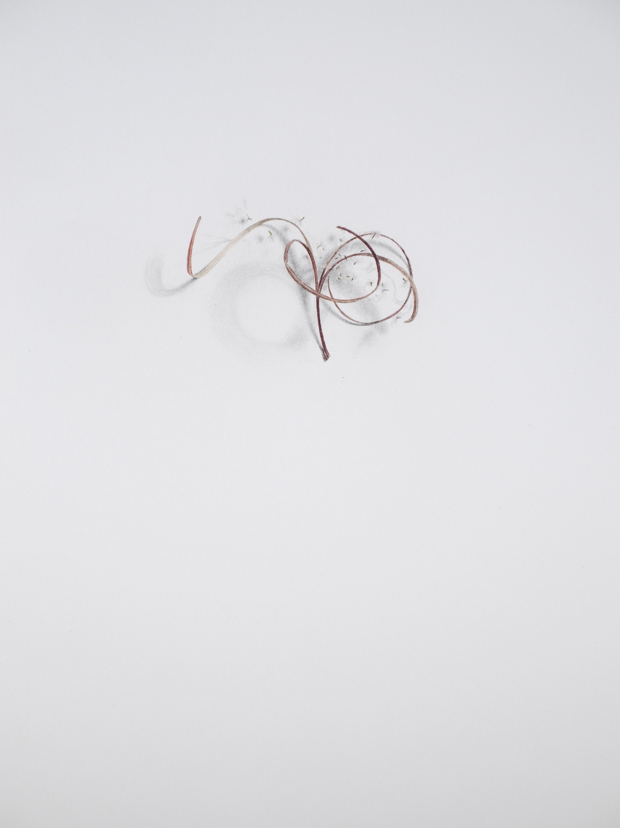 Die in Tirol geborene Künstlerin Alexandra Kontriner lebt und arbeitet heute in Wien. Die Gruppe von drei Aquarellen auf Papier, die sie für den Erich Grabner Preis eingereicht hat und für die sie heute mit dem Preis der Stadt Krems ausgezeichnet wird, verweist auf die Landschaft und die natürliche Umgebung, in der sie aufgewachsen ist. Das erste Werk basiert auf einer Fotografie eines wolkenverhangenen Himmels, die sie nach einem verheerenden Sturm aufgenommen hat, der im Herbst 2018 über die Südalpen fegte. Das nächste Werk führt uns auf den Boden hinunter und versetzt uns mitten in die geschundenen und verdrehten Überreste eines Fichtenwaldes. Es hat eine seltsame, beunruhigende Ruhe, die nur eine überwältigende, elementare Gewalt hervorrufen kann. Das dritte und letzte Blatt, in Aquarell und Bleistift gehalten, ist das ruhigste von allen. Es zeigt die geöffnete Samenkapsel des Schmalblättrigen Weidenröschens, einer Pflanze, die in beschädigten Waldgebieten gedeiht und so zu deren allmählicher, aber unvermeidlicher Regeneration beiträgt. In Originalgröße dargestellt und in einer Vitrine platziert, scheint es fast so, als wäre die Kapsel vorsichtig dort vor uns abgelegt worden.
