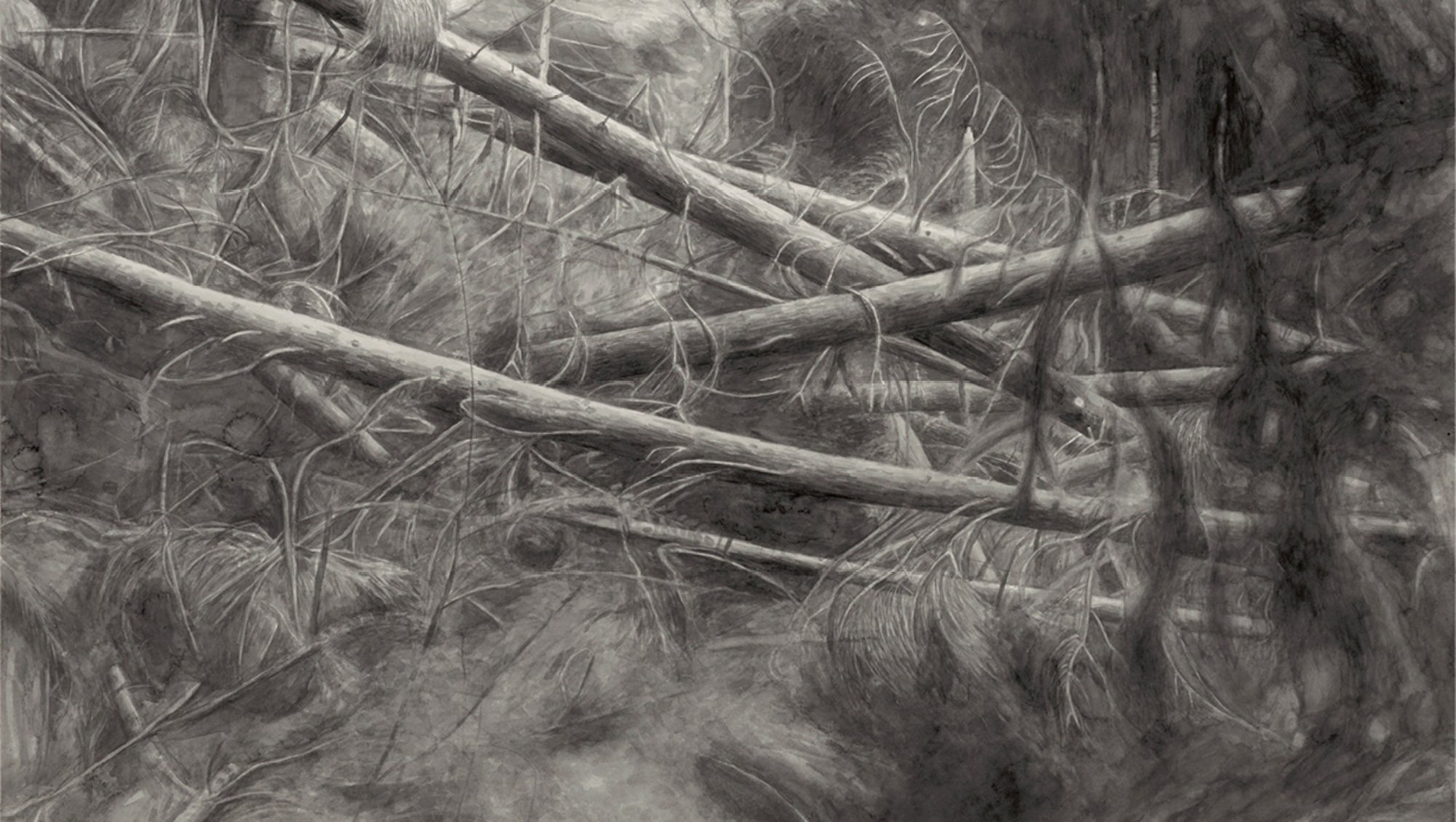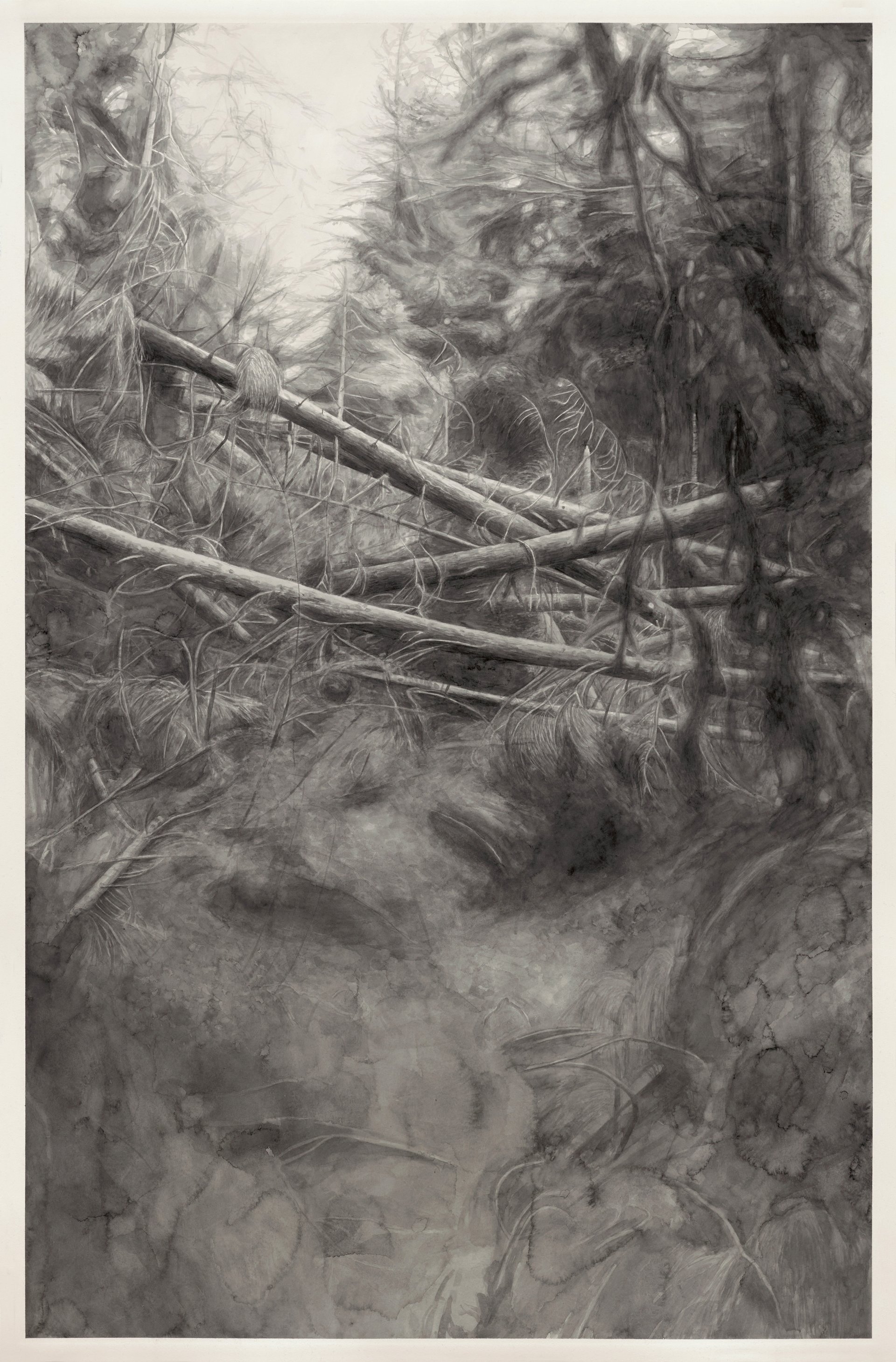 Alexandra Kontriner spürt in dieser Ausstellung den ökologischen Veränderungsprozessen in ihrer Lebensumgebung nach. Durch Kombination mehrerer Serien beschreibt sie die Zerstörung eines Naturraumes in Osttirol und spannt den Bogen zum allmählichen Wiederaufbau eines geschädigten Ökosystems in Wien. Die zum Teil großformatigen Schwarz-Weiß-Aquarelle von verwüsteten Landschaften wie entwurzelten Wäldern und Brachflächen kombiniert die Künstlerin mit Darstellungen von Pionierpflanzen. Diese Pflanzenarten sammelt und trocknet die Künstlerin, um sie anschließend filigran und detailreich in Originalgröße mit Aquarellfarbe und Bleistift auf Büttenpapier zu zeichnen.